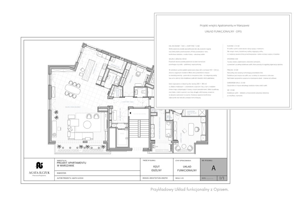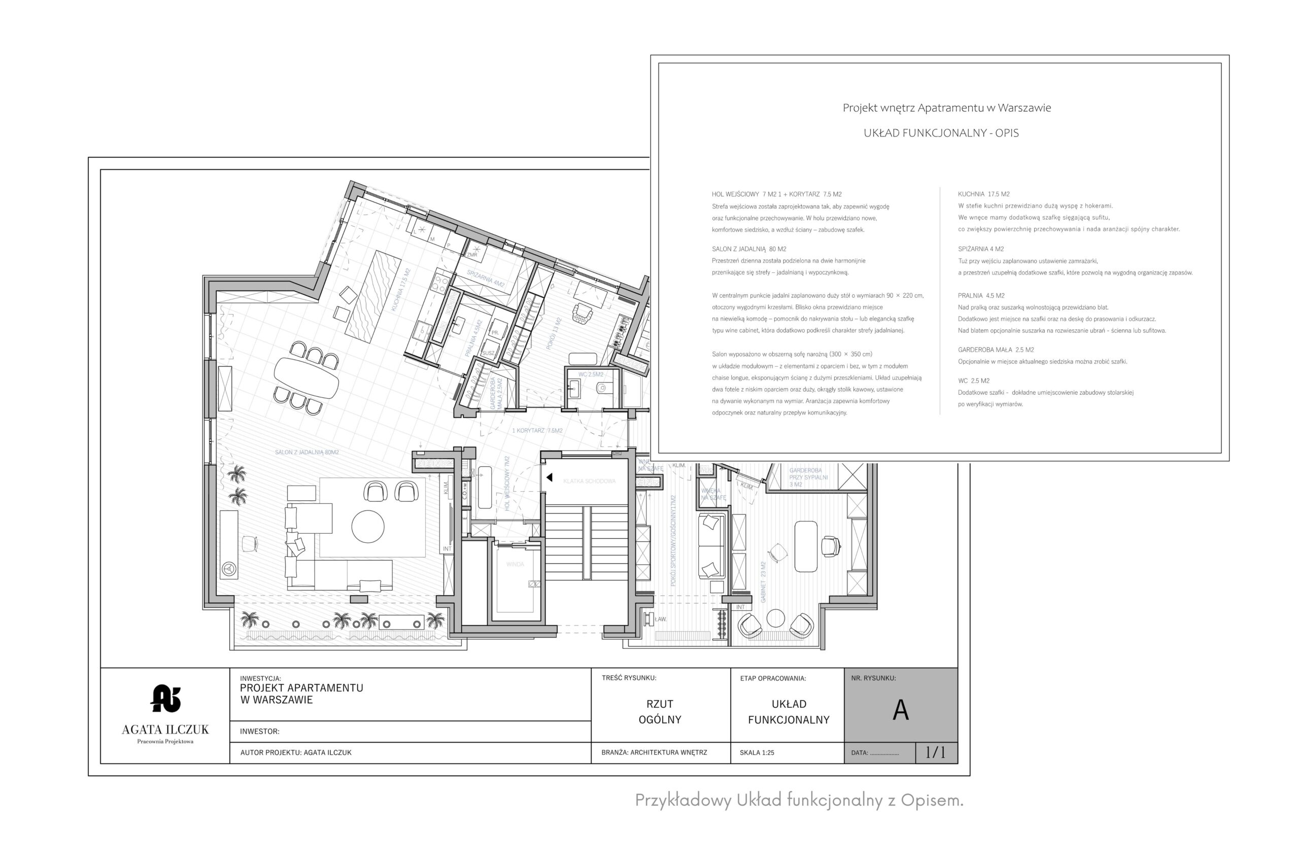Oferta skierowana jest do Klientek i Klientów planujących budowę domu lub posiadających mieszkanie w stanie deweloperskim, również z możliwością wprowadzenia zmian lokatorskich. Już na etapie realizacji inwestycji tworzymy przemyślaną i dopasowaną do indywidualnych potrzeb przestrzeń, eliminując konieczność kosztownych zmian na etapie wykańczania wnętrz. Projekt Funkcjonalny obejmuje szczegółowe rzuty przedstawiające układ ścian, funkcje pomieszczeń, rozmieszczenie zabudowy stolarskiej, mebli oraz elementów wyposażenia wnętrz wraz z opisem projektowym. Może zostać rozszerzony o opracowania instalacyjne, obejmujące punkty elektryczne, oświetlenie oraz podłączenia hydrauliczne. Przygotowanie układu funkcjonalnego jest też pierwszym etapem prac nad Projektem Kompleksowym.